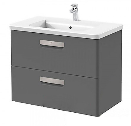 Тумба підвісна з двома ящиками МДФ 80х44 сірий антрацит з раковиною для ванної Roca Gap кераміка білий з сифоном A855998153