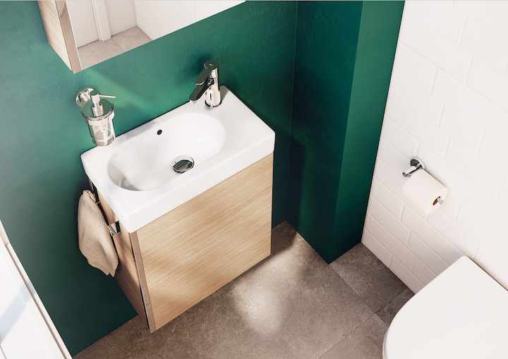 - Комплект: шафка + раковина Roca Mini 45 см текстурний дуб