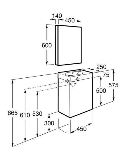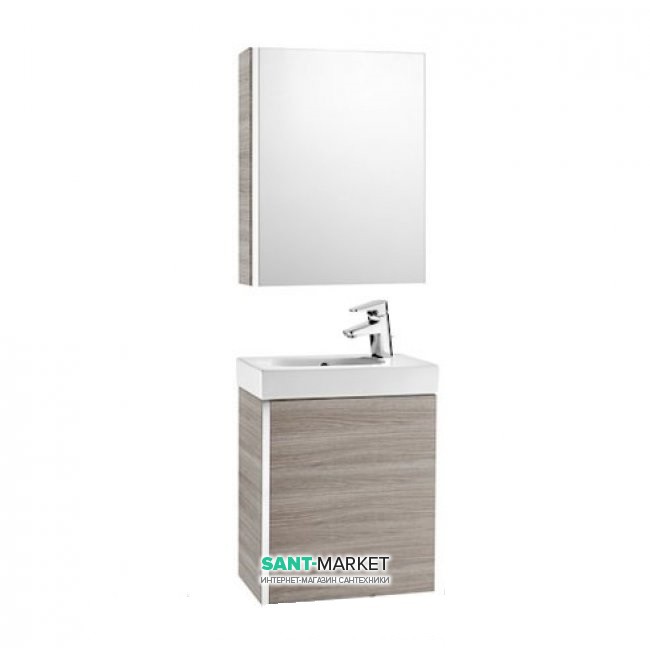 Тумба підвісна з раковиною для ванної Roca Mini 45 см з дзеркальним шафою текстурний сірий A855866156