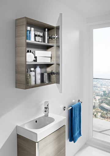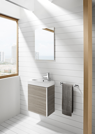 Тумба підвісна з раковиною для ванної Roca Mini 45 см з дзеркальним шафою текстурний сірий