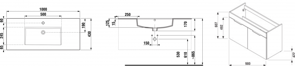 - Ширина раковини: 100 см