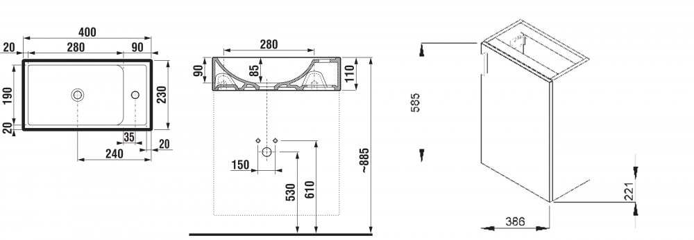 1) Тумба підвісна з раковиною для ванної Jika Petit 40х23 см сірий