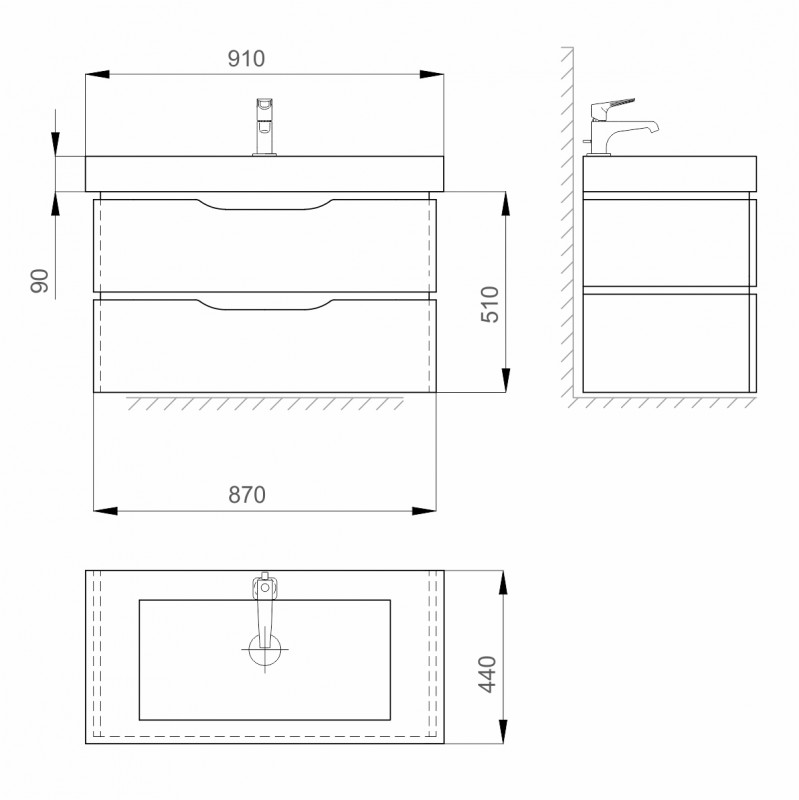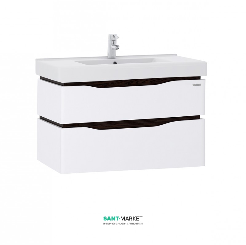 Тумба підвісити Sanwerk Alessa Air 90х44 см з раковиною Канті білий / венге