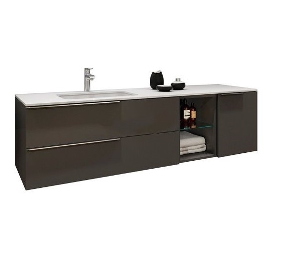 можливо укомплектувати раковиною зі скла або акрилового каменю, а також стільницею з акрилового каменю з раковиною (за додаткову вартість)
