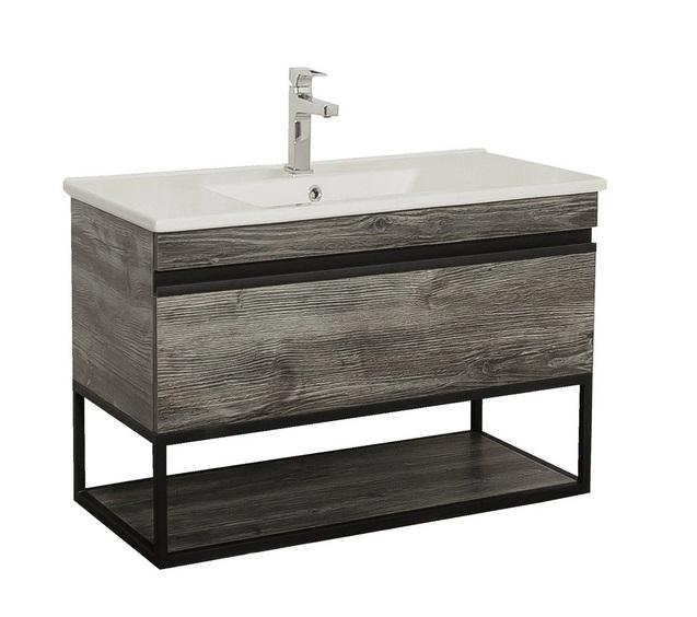 Тумба подвесная Aqua Rodos Loft-Iron 100 см с раковиной Arte ДСП/МДФ дуб морас АР000051853