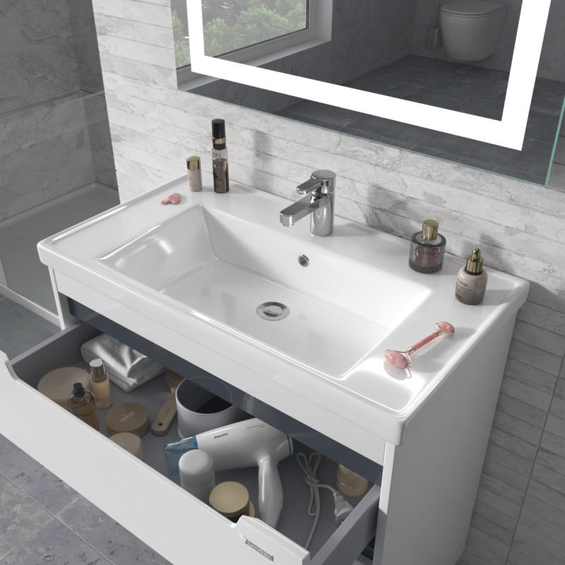 У комплекті поставляється високоякісний керамічний турецький умивальник New Line (входить у вартість), товщина умивальника 45 мм. Глибина умивальника 100 мм. Можливий консольний (підвісний) аналог цієї моделі.