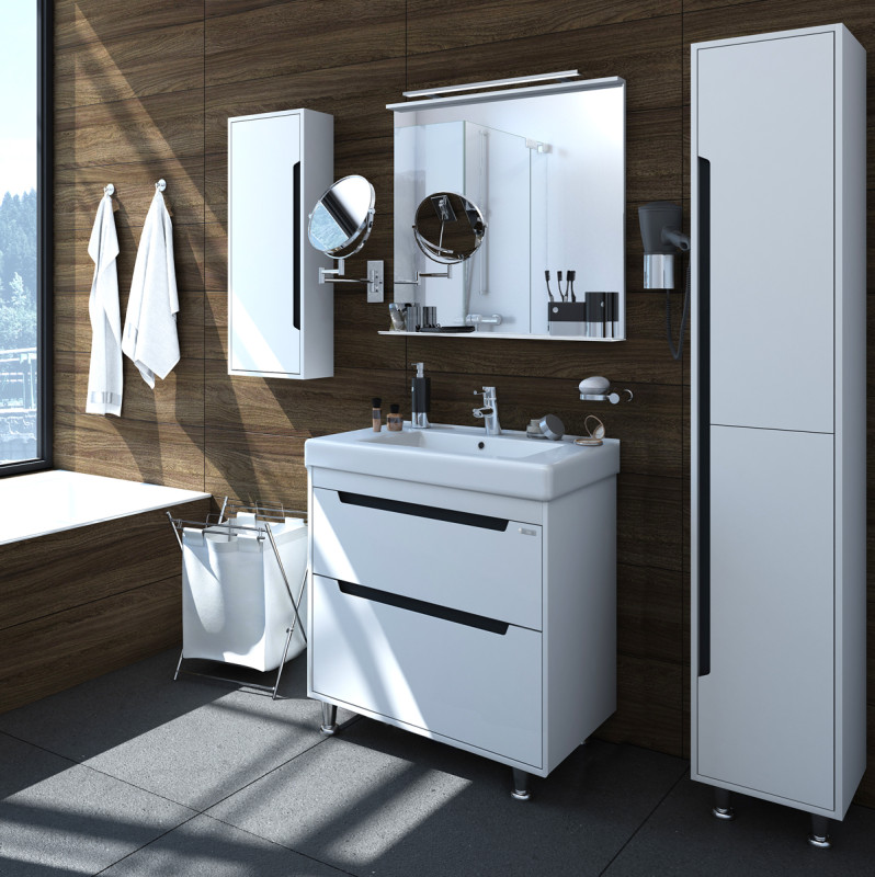 4 Команда фахівців Санверка переконана, що продукція повинна бути привабливою з естетичної точки зору і повинна бути такою ж відмінною від інших продуктів для своїх споживчих властивостей на краще. Компанія прагне зробити продукцію оригінальною, сучасною та незабутньою. ДодатковийКоефіцієнт успішного розвитку є привабливою ціною. Вичерпна пропозиція: меблі для ванної кімнати, дзеркала, світильники. "greta" - шафа для ванної кімнати в комплекті з умивальником. ширина 80 див. Шафа підлоги у ванній має два ящики різного розміру для зручного щоденного використання. Тип покриття цього шафи - це фарбування. Кабіна шафи виготовлена з високої якості та стійкої вологи МДФ. Для малювання використовуються екологічно чисті матеріали відомого італійського виробника Sayerlack. Технологія передбачає застосування трьох шарів фарби.