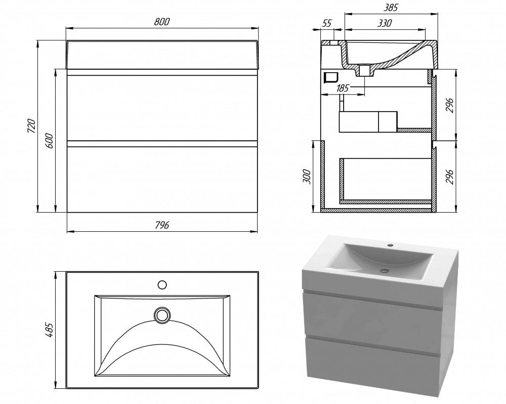 Розміри тумби (ш*г*в): 800х485х720 мм