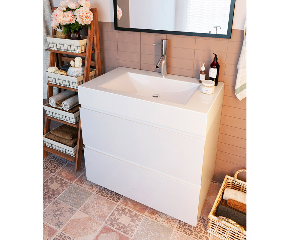 Корпус тумби «Елегія» дляванної кімнати виготовлений з фарбованого МДФ, використовується фурнітура Blum (Австрія), які захоплюють своєю бездоганною роботою та чудовою якістю. Ящики з доводчиками.