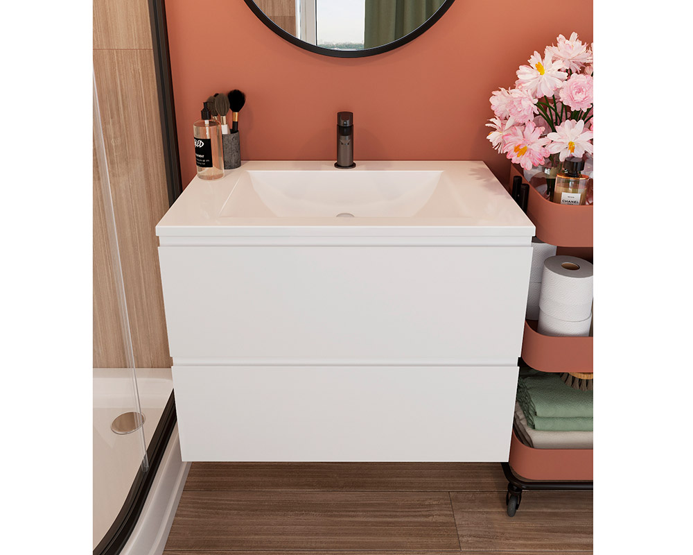 Корпус тумби "Елегія"для ванної кімнати виготовлений із фарбованого МДФ, використовується фурнітура Blum (Австрія), які захоплюють своєю бездоганною роботою та чудовою якістю. Ящики з доводчиками.