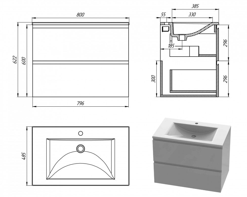 Розміри тумби (ш*г*в): 800х485х720 мм