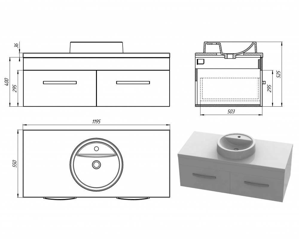 Розміри тумби (ш*г*в): 1200х550х400 мм