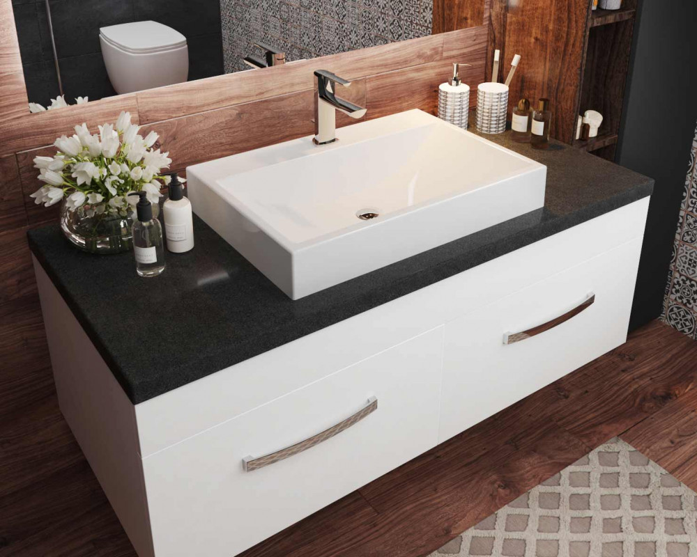 Стільниця виготовлена з високоякісного матеріалу - литого мармуру. Стільниця з литого штучного каменю для ванної кімнати непроникна для води та пари, тому про проблеми деформування поверхні можна забути. За тактильним комфортом стільниця зі штучногокаменю також виграє у холодного мармуру та граніту. Виглядають вони дуже дорого і ефектно, а за ціною набагато доступнішою за стільниці з натурального каменю. Вироби з литого мармуру не мають пір, мікротріщин та сполучних ліній, отже, легко миються, не вбирають бруд та запахи. Штучний камінь також має високу стійкість до термічних та хімічних впливів, що робить стільницю з цього матеріалу довговічною та зручною в експлуатації.