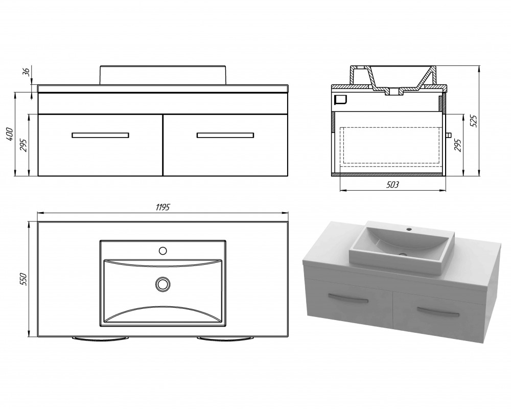 Розміри тумби (ш*г*в): 1200х550х400 мм