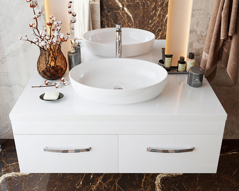 Стільниця та умивальникможуть бути виконані в 46 стандартних кольорах з різними колірними ефектами та включеннями. Стільницю та умивальник Ви можете підібрати в одному кольорі, що створить ідеально завершений дизайн Вашої ванної кімнати, вони гармоніюватимуть і доповнюватимуть один одного, виглядатимуть стильно і дорого. Також Ви можете замовити стільницю та умивальник у різних кольорах: абсолютно протилежних або ж в одній колірній гамі, але з різними ефектами. Цей експеримент перетворить Вашу ванну кімнату, додасть їй шарму та чарівності, зробить її яскравою, багатогранною, цікавою та ексклюзивною!