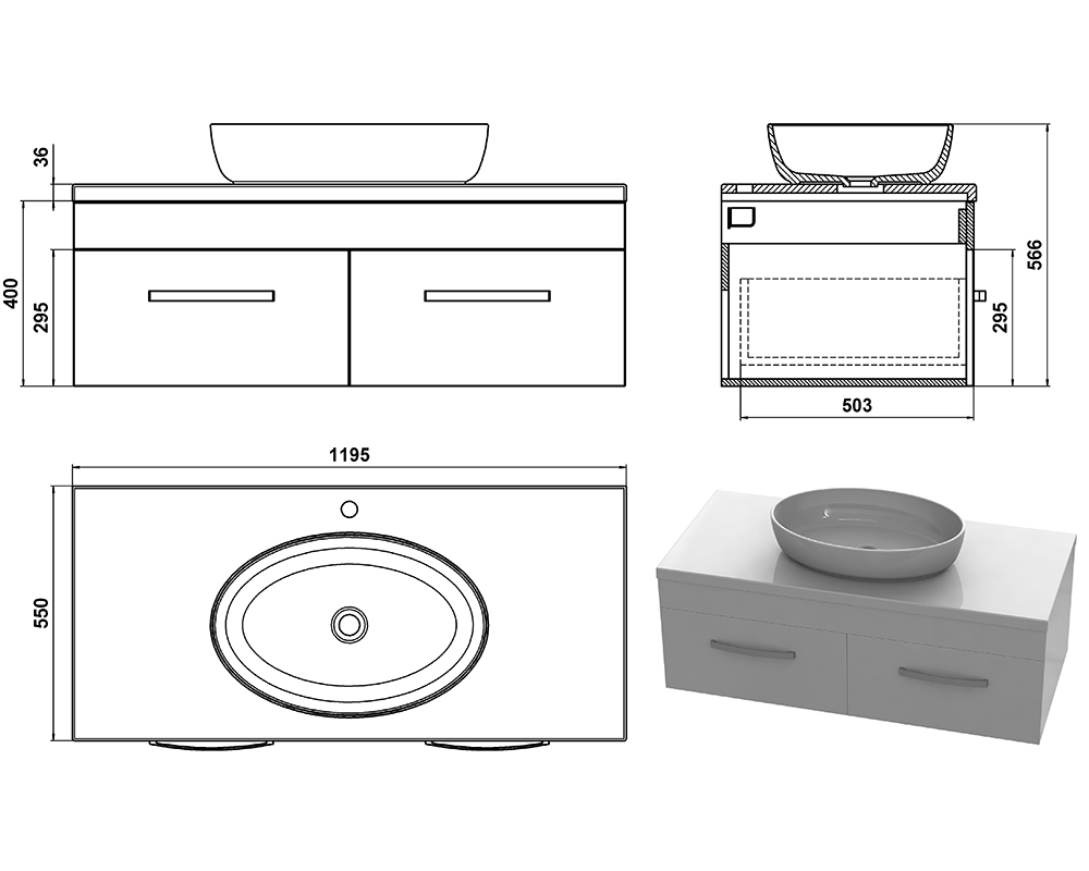 Розміри тумби (ш*г*в): 1200х550х400 мм
