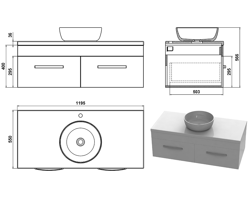 Розміри тумби (ш*г*в): 1200х550х400 мм