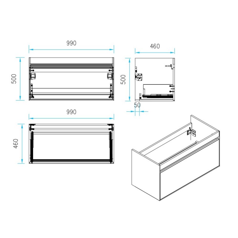 Габарити раковини 101.5х47.5х15 см