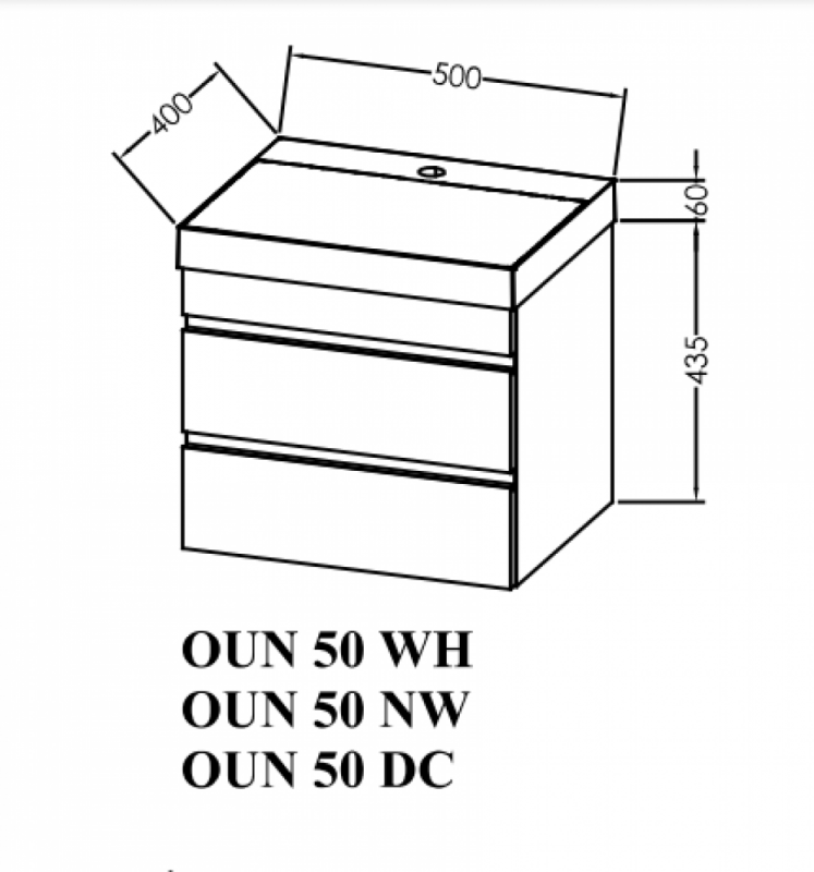 - Декоративне покриття: збагачена деревинно-стружкова плита білий (WH), натуральне дерево (NW), темний бетон (DC)