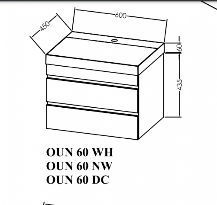 - Декоративне покриття: збагачена деревинно-стружкова плита білий (WH), натуральне дерево (NW), темний бетон (DC)