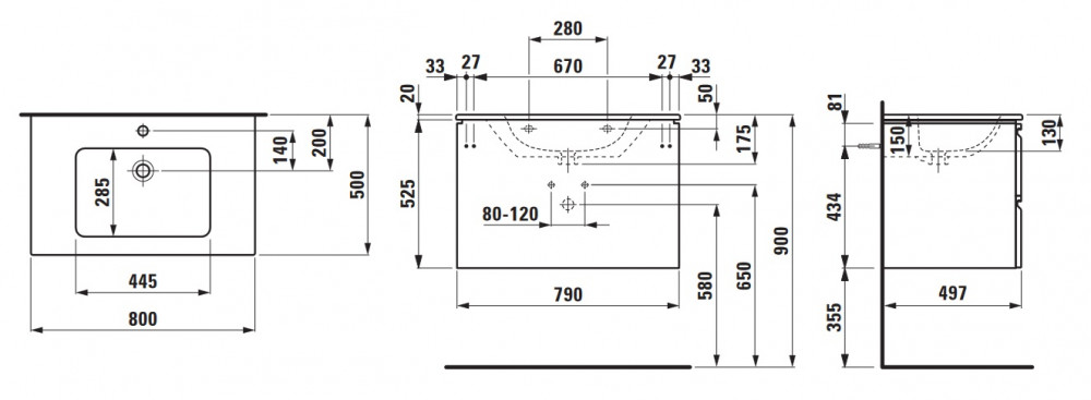 Тумба з раковиною Laufen Pro S 80х50х54,5 см МДФ венге H8619634231041