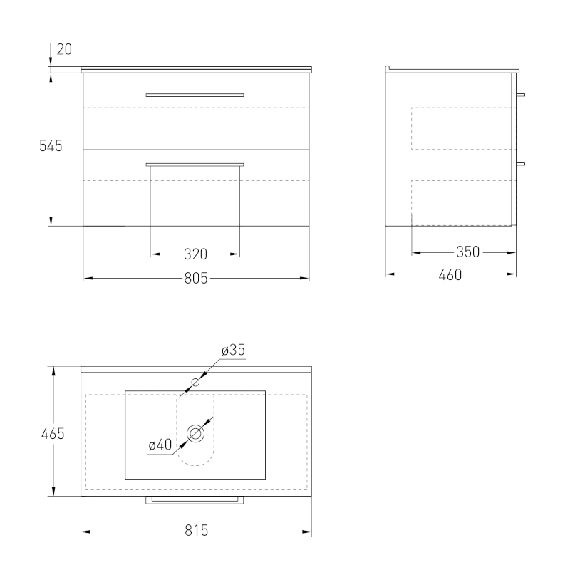 Тумба з раковиною Volle Nemo New 80 см підвісна МДФ/ДСП 15-17-80N