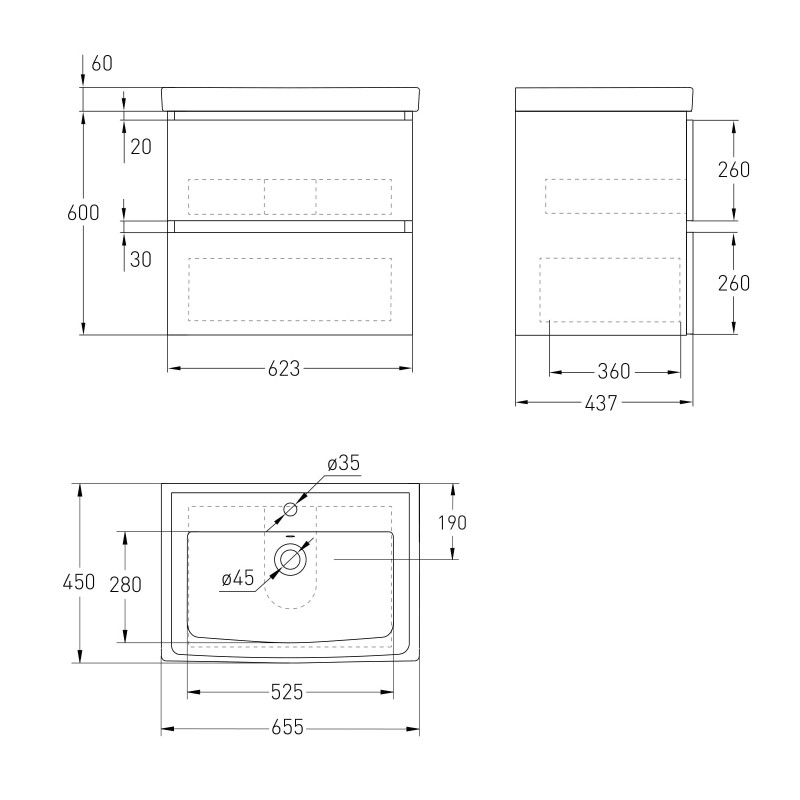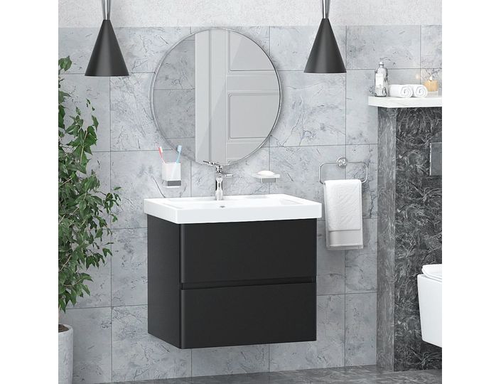 Тумба з раковиною Volle Oliva 65 см підвісна МДФ/ДСП чорний 15-45-61B