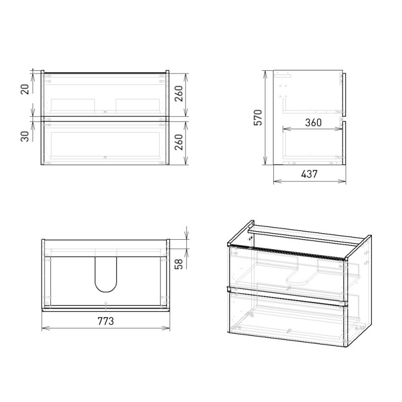- Комплект меблів 80 см: тумба підвісна, 2 ящика + умивальник накладної
