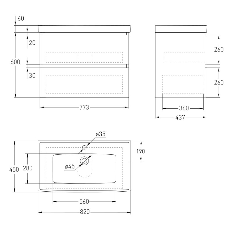 - Прихована система кріплення підвісної тумби з можливістю регулювання положення забезпечить надійність фіксації тумби