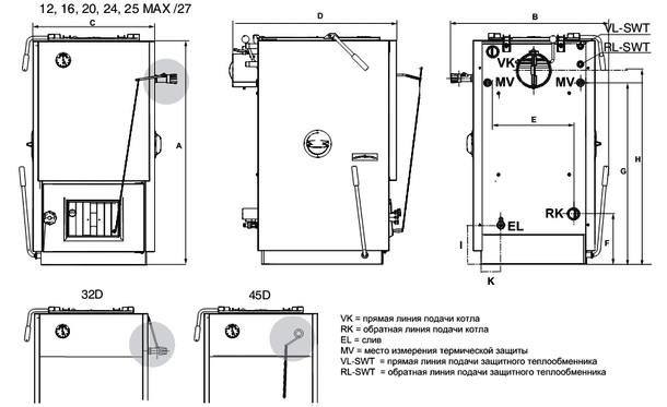 1) Твердопаливний котел Bosch Solid 2000 B-2 SFU 20 HNS в зборі
