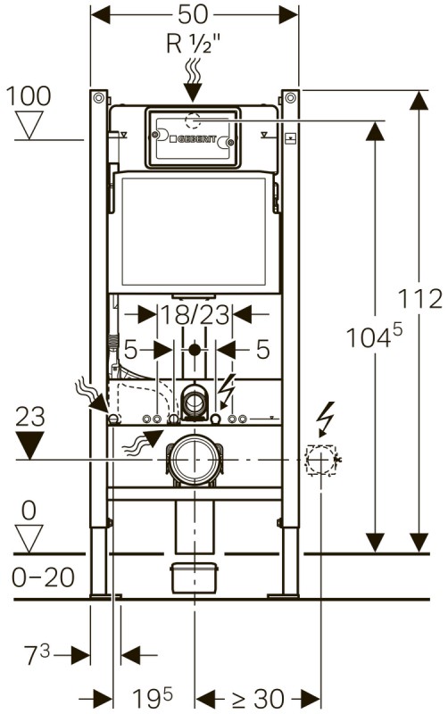 - Для використання з бачком прихованого монтажу Geberit Delta 12см (UP182)