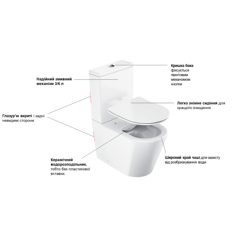 - Гарантія: 10 років, 3 роки на сидіння унітазу