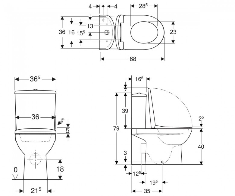 Унітаз-компакт підлоговий Geberit Selnova безободковий 36,5х68 см фарфор білий