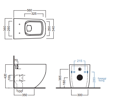 Унітази колекції NEXT оснащуються фірмовим сидінням з кришкою, яка має систему плавного опускання. Біде є моделі в єдиному стилі колекції. Чаша має спеціальний отвір для кріплення змішувача, а також отвір переливу. Зливний отвір, закритого типу, виконане в білому кольорі.