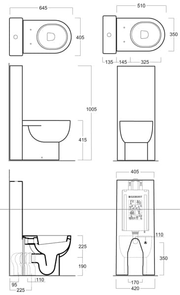 1) Унітаз підлоговий Simas E-Line 35х51 см фаянс білий
