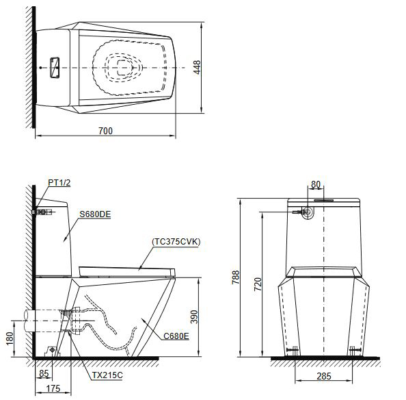 Унітаз підлоговий TOTO Jewelhex без сидіння і бачка білий CW680PB