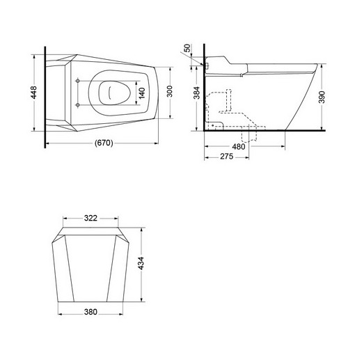 Підлоговий Jewelhex має супергладкіх покриття CeFiONtect . Дві інші технології - фірмовий кругової змив "торнадо" і безободковая чаша - відсутні. У Jewelhex звичайний сифонний змив і чаша з ободом.