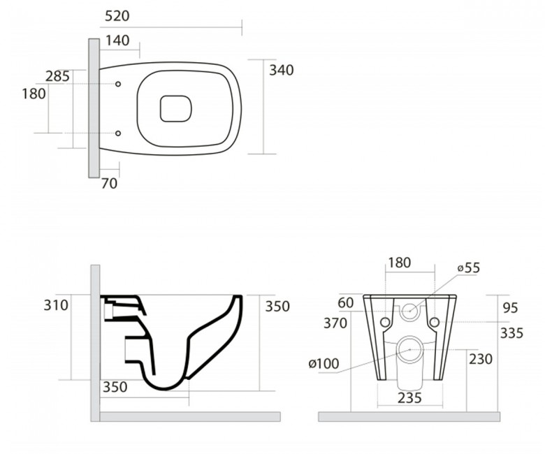1) Унітаз підвісний Axa White Jam безободковий 34х52 см кераміка білий глянцевий
