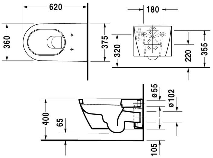 1) Унітаз підвісний Duravit Starck 2 37,5х62 см кераміка білий