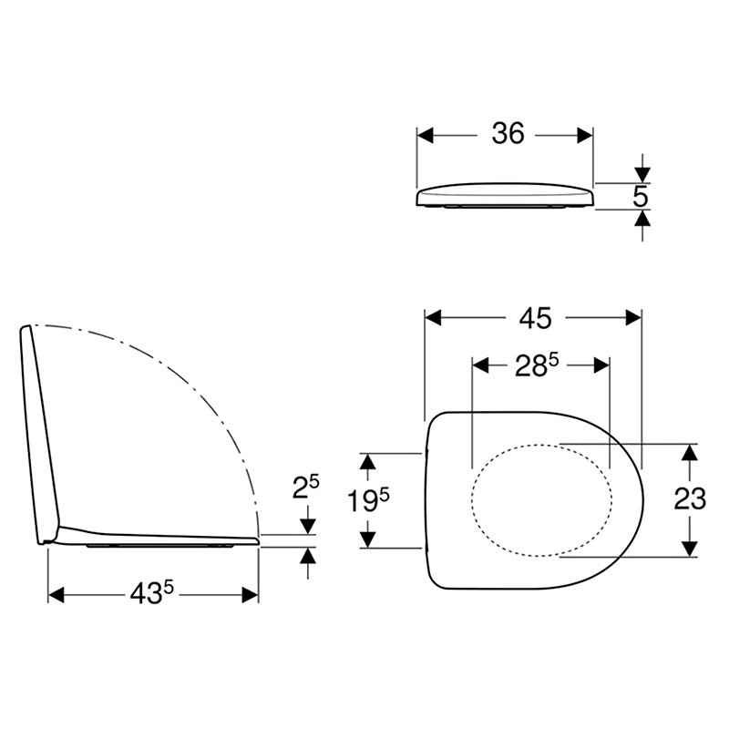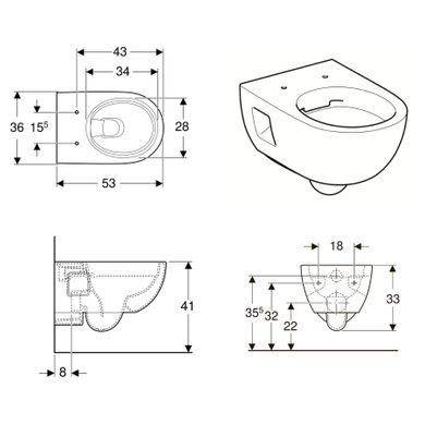 1) Унітаз підвісний Geberit Selnova 36х53 см