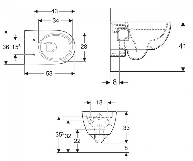 1) Унітаз підвісний Geberit Selnova безободковий 36х53 см фарфор білий
