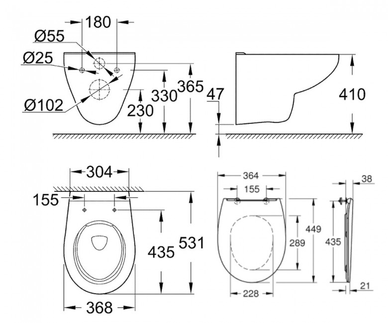 Унітаз підвісний Grohe Bau Ceramic 36,8х53,1 см з кришкою кераміка альпін-білий 39899000