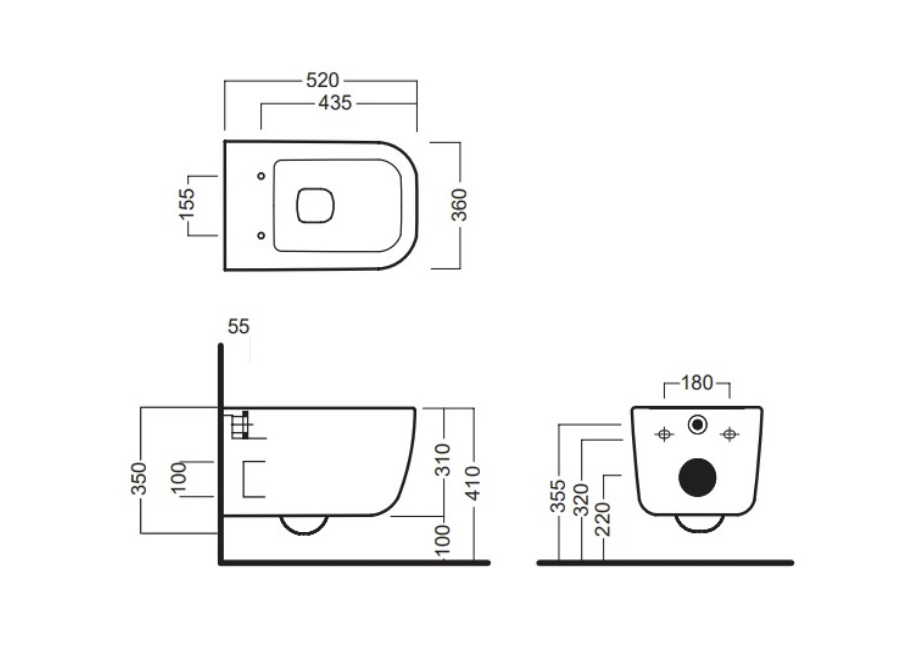 Унітаз підвісний Hatria Bianca 52х36 см санітарна кераміка чорний матовий A1Y3AK02