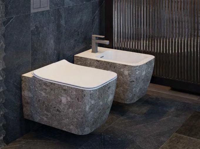 1) Унітаз підвісний Hidra Faster Kiub Rimless 36,5х54 см санфаянс темно-сірий мармур