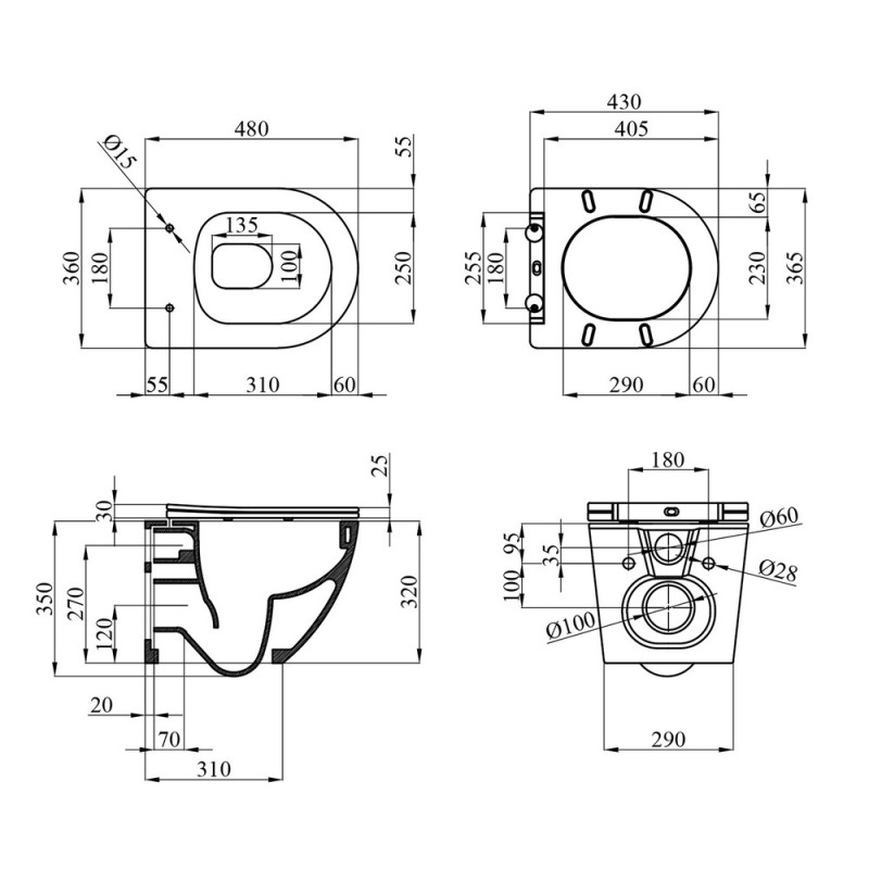 Унітаз підвісний Kroner Harz KH483632WHIT Tornado 36х48 см з кришкою Soft-Close фаянс білий CV032967
