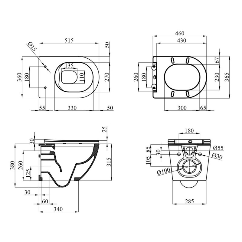 Унітаз підвісний Kroner Harz KH523632WHIR 36х51,5 см з кришкою Soft-Close фаянс білий CV032969