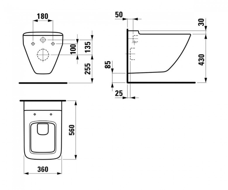 1) Унітаз підвісний Laufen Palace без сидіння кераміка білий