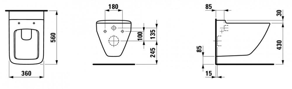 1) Унітаз підлоговий Laufen Pro вертикальний випуск без кришки білий