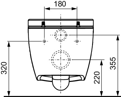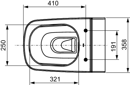- Безободкова чаша унітазу з вбудованим захистом від бризок