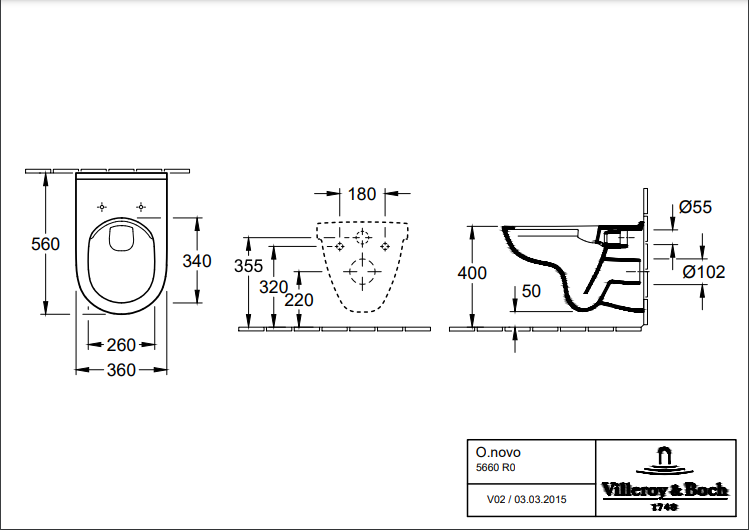 Унітаз підвісний Villeroy & Boch O.Novo 36х56 см відкритий змивний край AntiBac CeramicPlus альпійський білий 5660R0T2